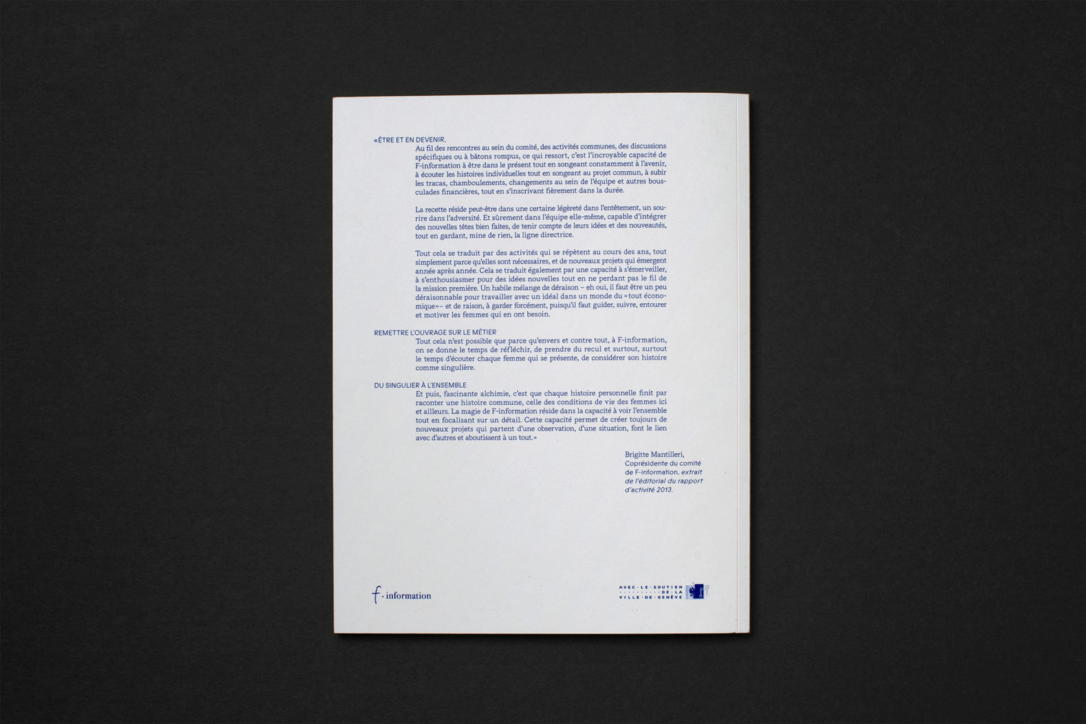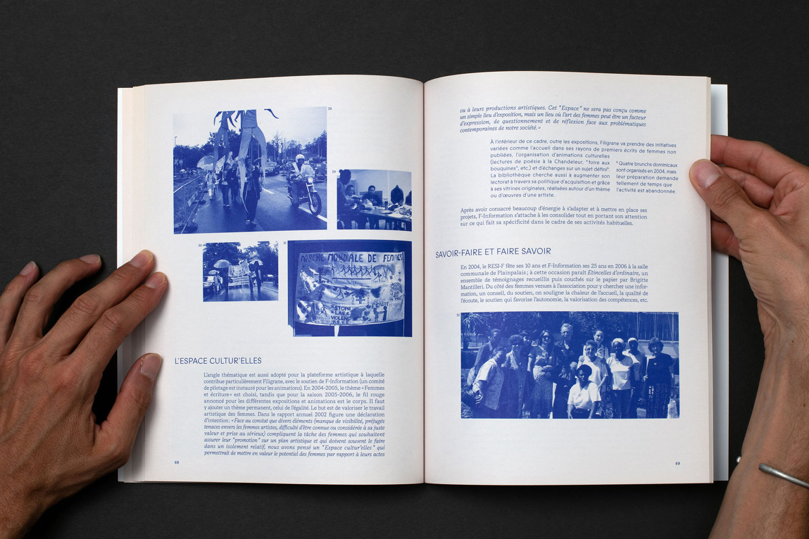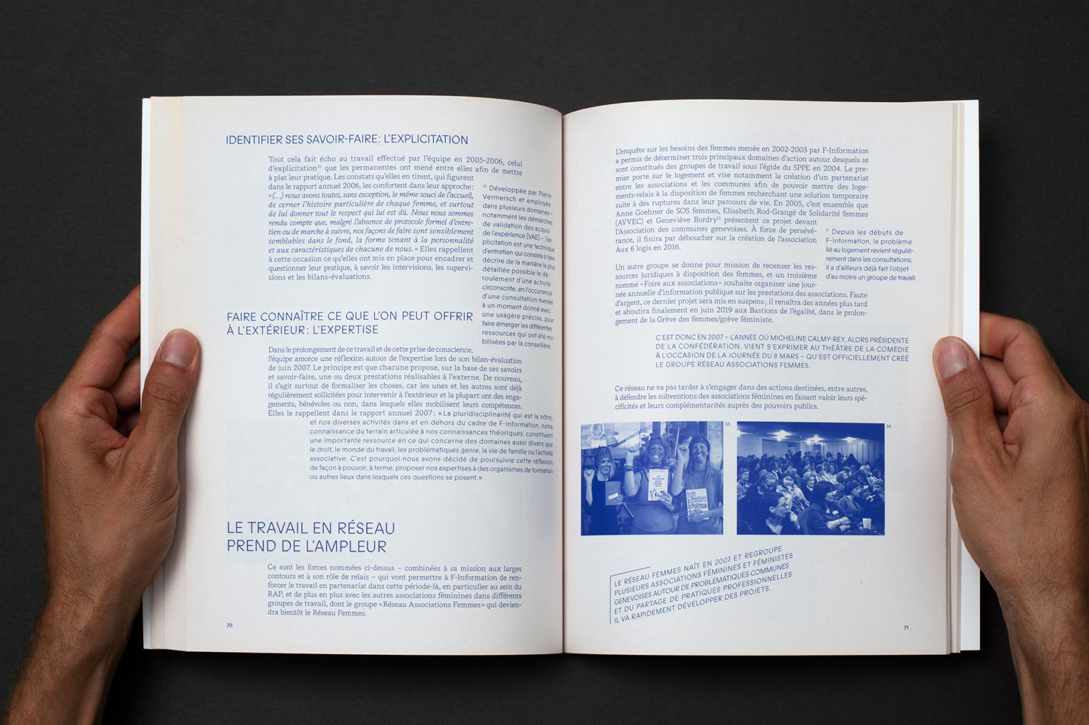 F-information a fêté ses 40 ans en 2021 et l’équipe a souhaité réaliser un livre retraçant ces années d’existence. Nous avons travaillé avec des images d’archives sélectionnées, ainsi qu’un texte écrit par Mélanie Blanc.