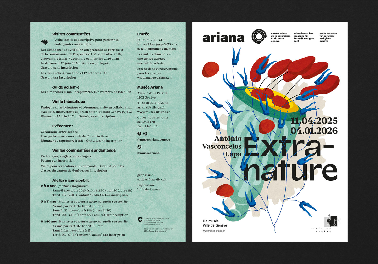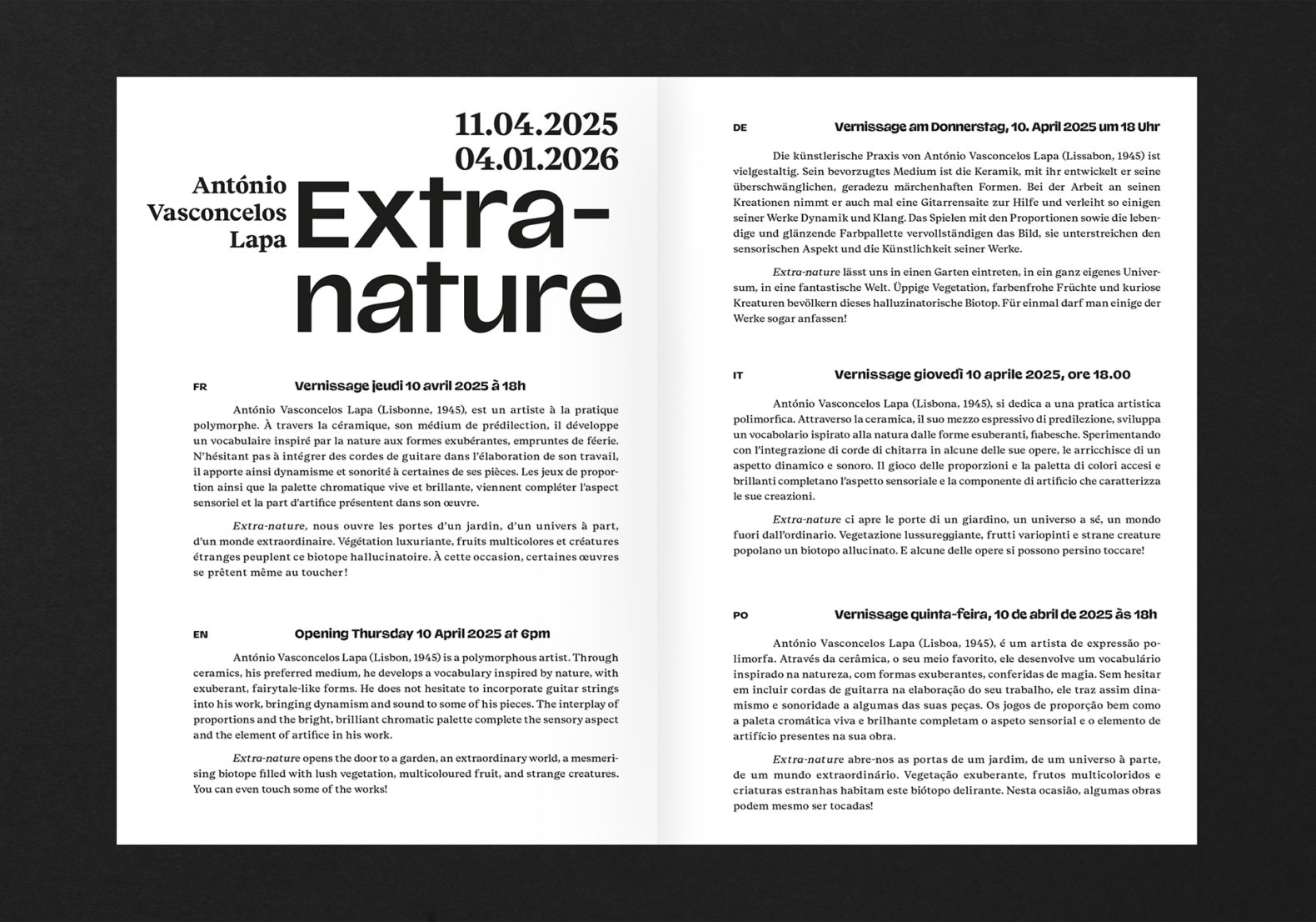 A travers ses céramiques, António Vasconcelos fait référence à l’enfance, aux contes et à la rencontre. La joie et l’humour font également partie intégrante des ses œuvres et de sa personnalité. Afin de transcrire ses différents aspects, nous avons choisi de faire dialoguer certaines de ses œuvres pour créer un récit visuel. Les croquis préparatoires de l’artiste sont une étape essentielle dans la réalisation de ses pièces. Pour représenter son travail, nous avons opté pour l’illustration avec un ajout de diverses textures évoquant la céramique. Cette approche permet de rester dans l’évocation et l’imaginaire, en dévoilant une partie de son univers sans révéler les œuvres elles-même.