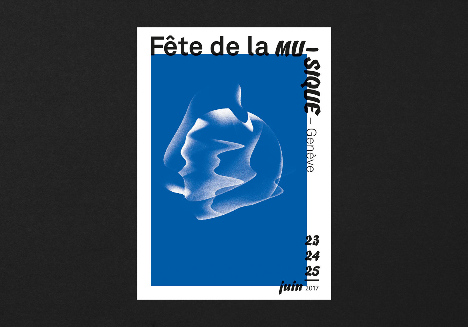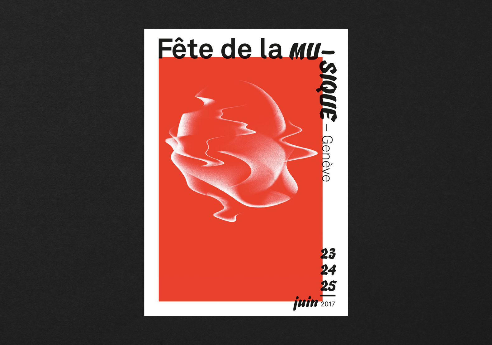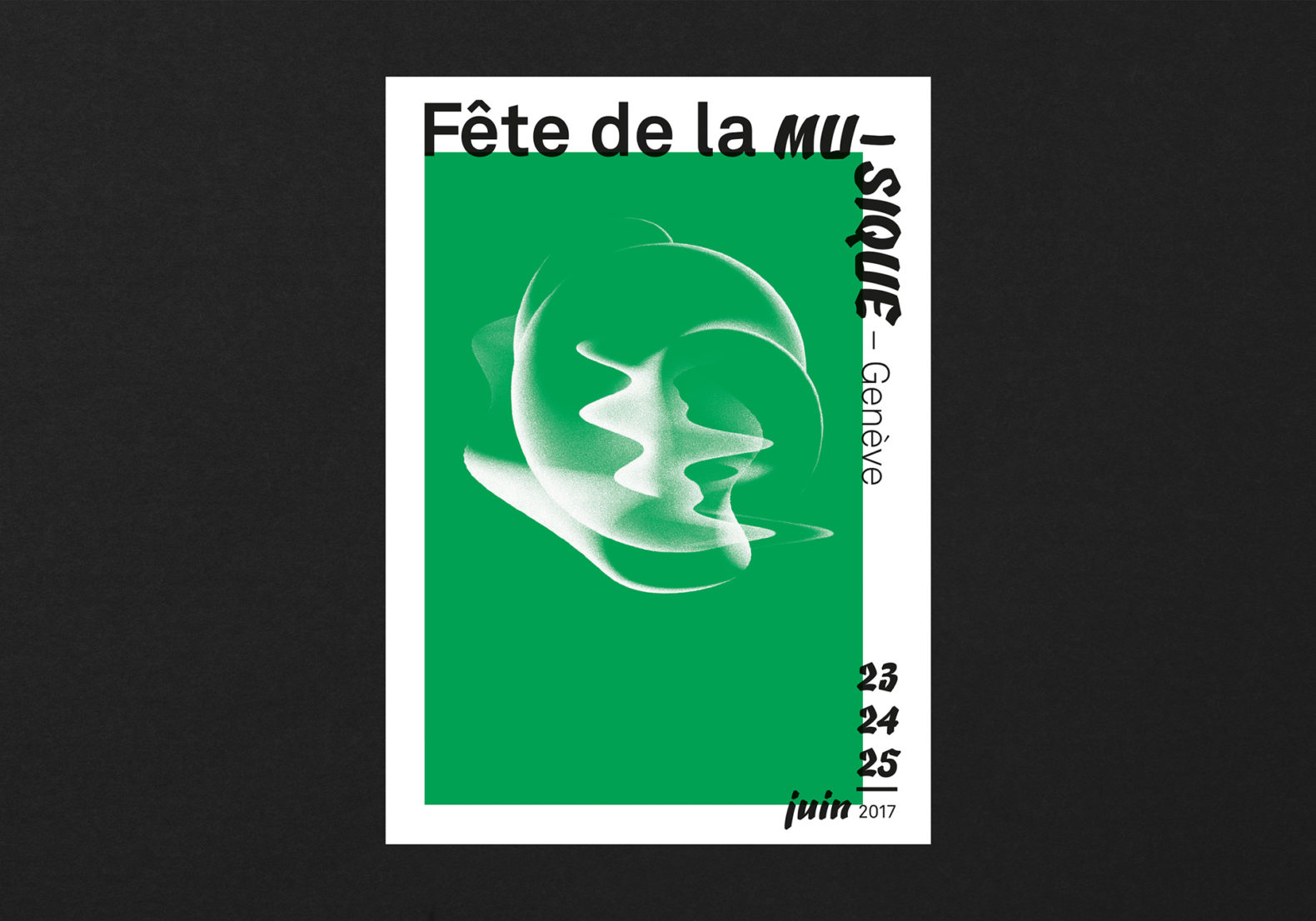 La réalisation de la communication visuelle de la Fête de la musique (Genève) est déclinée sur 3 ans. Nous avons choisi de conserver une approche abstraite pour représenter la musique.