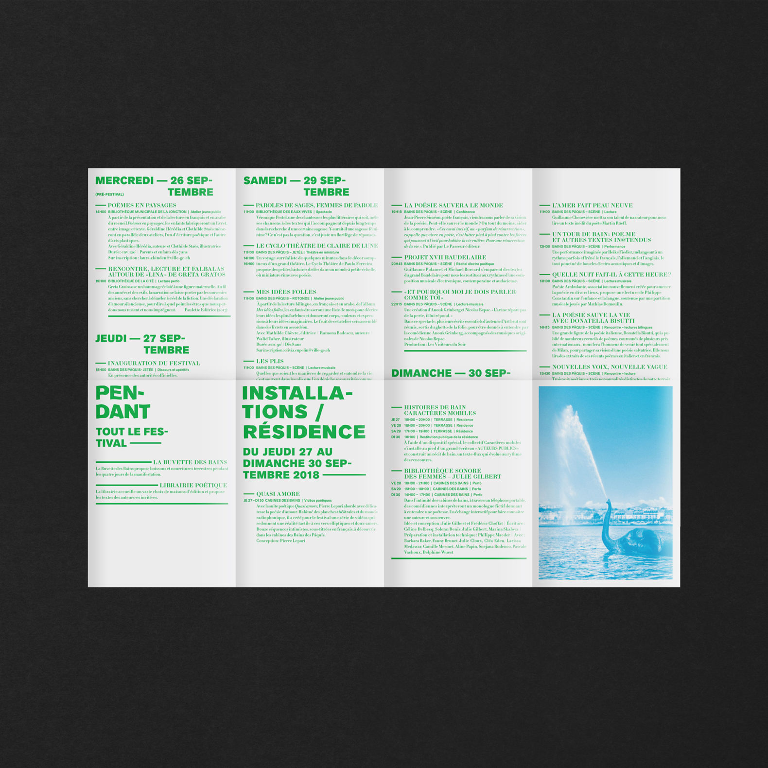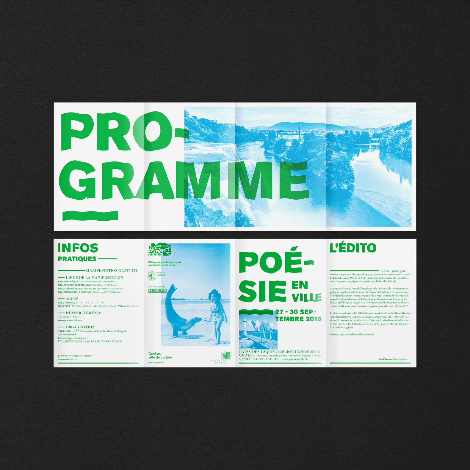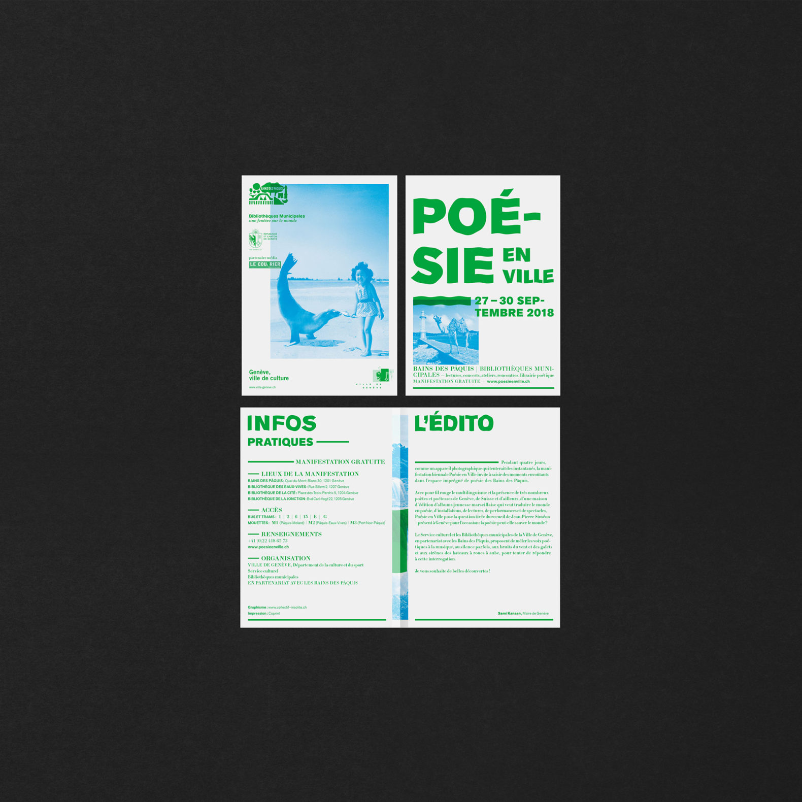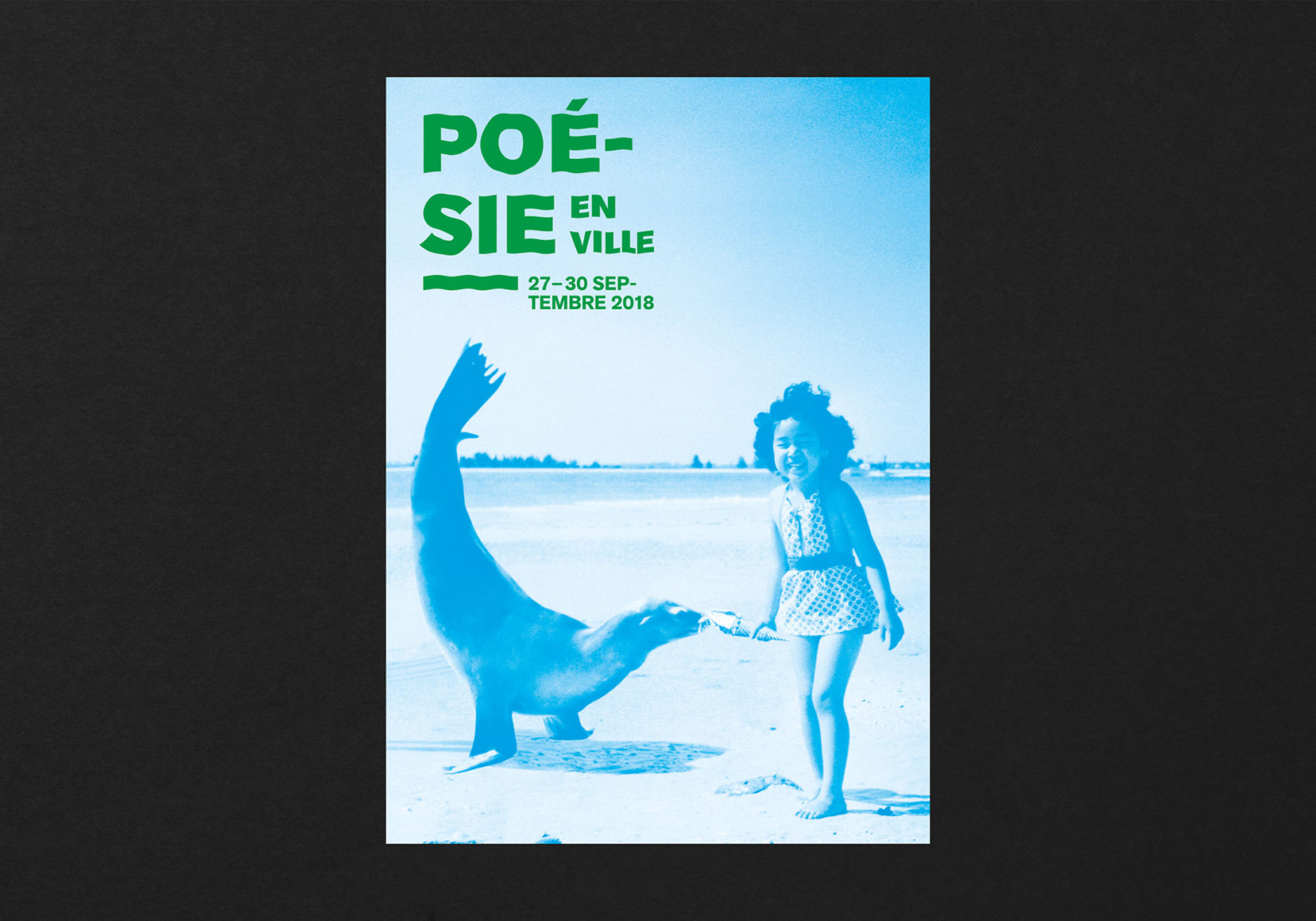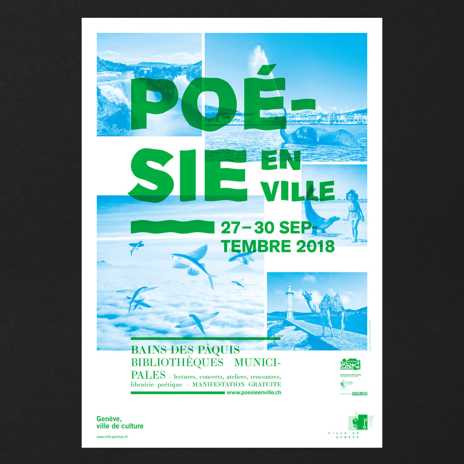 Pour cette nouvelle édition, nous avons repris la ligne graphique développée en 2014 et 2016. L’idée est toujours de créer des histoires poétiques qui mettent en relation la population genevoise avec la poésie contemporaine. Ces montages photographiques décalés et poétiques sont en lien avec les Bains des Pâquis, qui accueillent le festival.